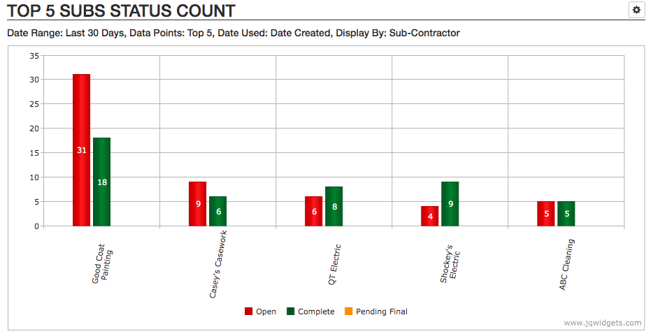 Whichever process you’re using, learning more about your project will save you time and money. Data is a powerful tool that is frequently overlooked when deadlines are approaching. The pie chart displays the most common punch item in the last 30 days. Watch for trends in deficiency issues to determine if there's bigger problems to solve with subs. This can save your team costly cleanup and re-inspection efforts.