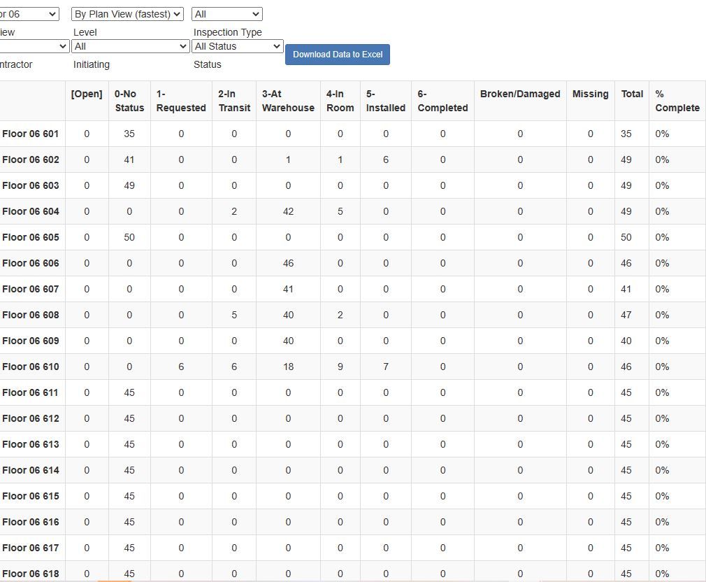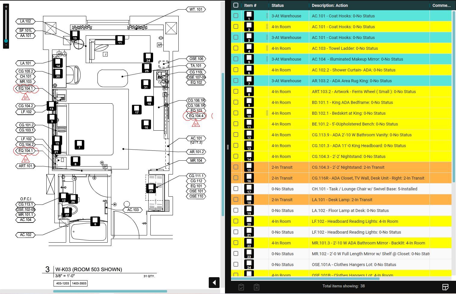 No matter the size of your project or the number of FFE items to be installed, you can track every piece and quickly report the status of your rooms.