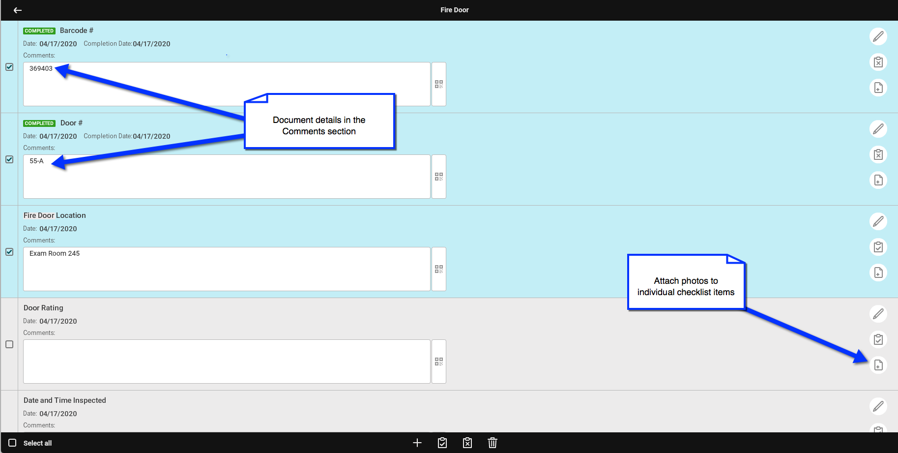 Quickly scroll through checklists and sign-off or add attachments to provide additional info via your device