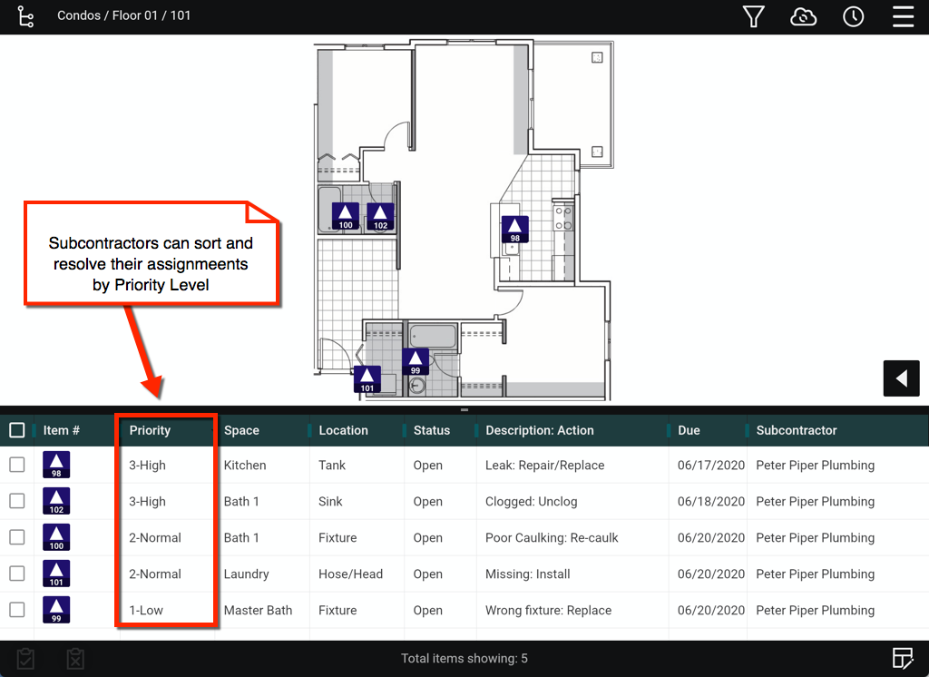 Include a Priority level when you add a punch list item in FinishLine