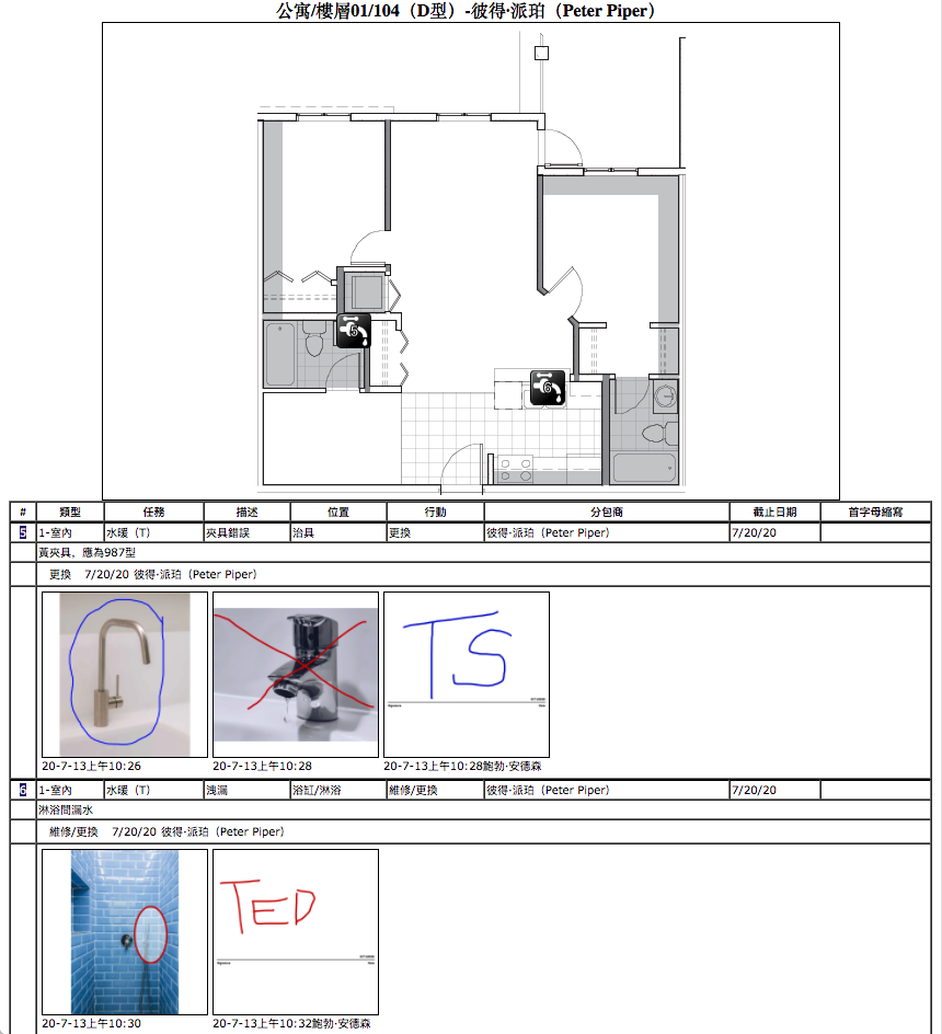 Plumber's Report in Chinese